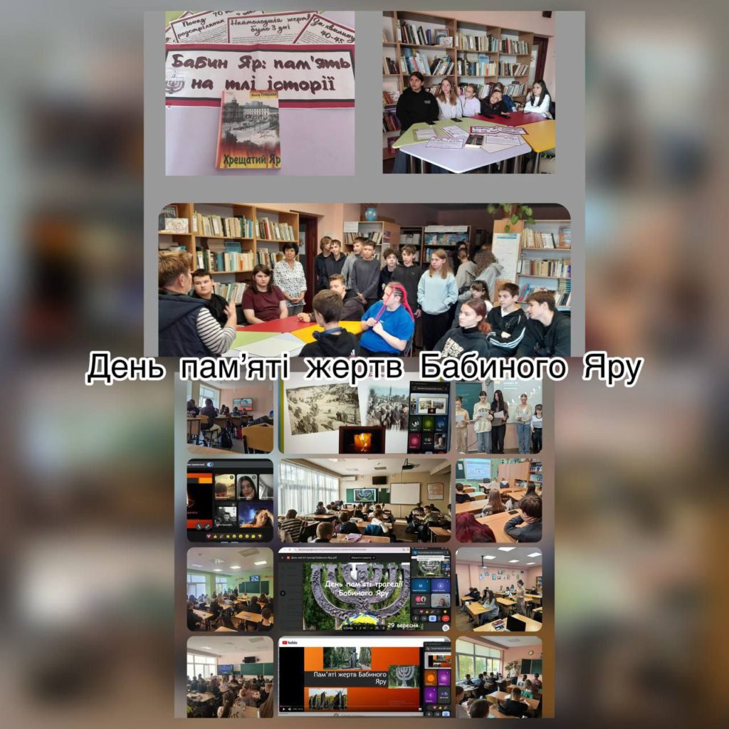 Сьогодні у ліцеї були проведені години спілкування, де діти обговорили трагедію Бабиного Яру, провели паралелі з жахіттям сучасності. У бібліотеці Слобожанського ліцею було проведено зустріч з учнями, де вони обговорювали книгу, в якій описані ці трагічні події.