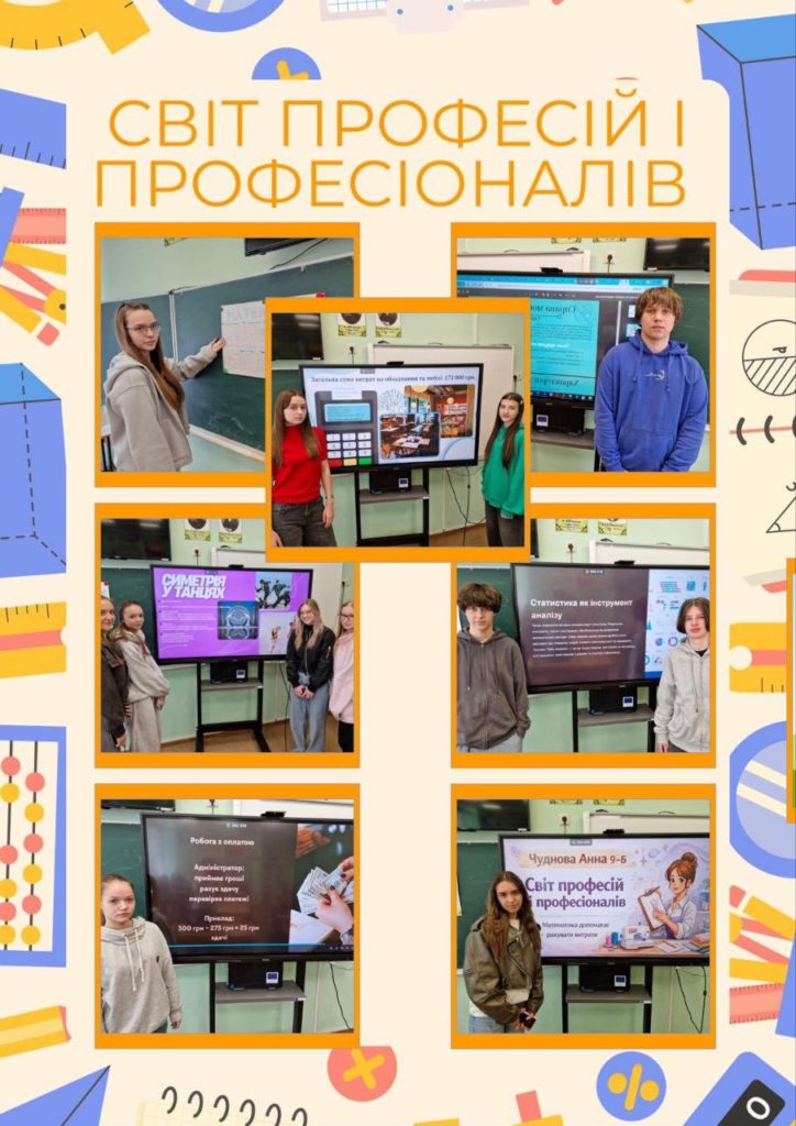 У межах Тижня математики, інформатики та фізики у 9-Б класі відбувся фінал нашого масштабного проєкту «Світ професій і професіоналів». Весь місяць учні готувалися, досліджували та проєктували своє майбутнє!