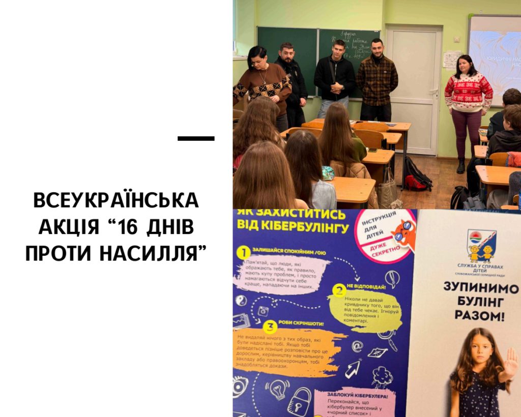 Сьогодні учні 8-Б класу взяли участь у надзвичайно важливій та змістовній зустрічі, присвяченій Всеукраїнській акції “16 днів проти насилля”. До ліцею завітали фахівці, які щоденно працюють задля безпеки та захисту дітей у громаді: