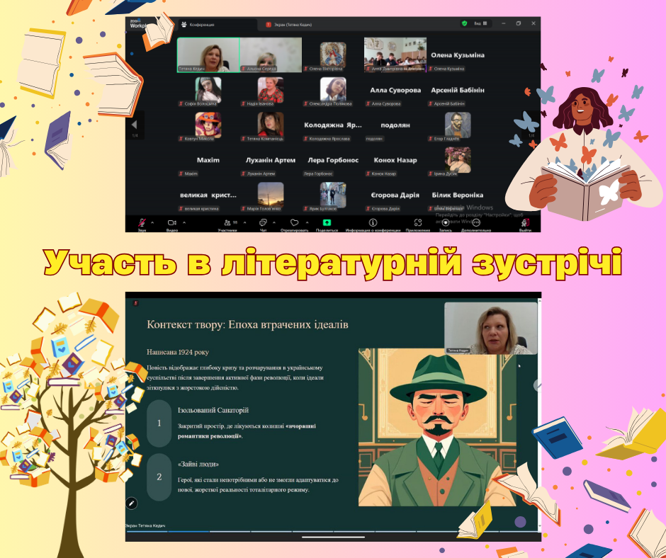 Юні літераторки, одинадцятикласниці Слобожанського ліцею, Панягіна Анастасія, Денисенко Ксенія, Тихонова Ксенія та їх науковий наставник- вчителька української мови та літератури Світлана Гуденко взяли активну участь у літературній зустрічі в межах обласного освітнього проєкту «Дотик словом» на тему: «Санаторійна зона» М.Хвильового: мотив закритого простору та зародження божевілля», яка проведена Дніпропетровським відділенням Малої академії наук України.